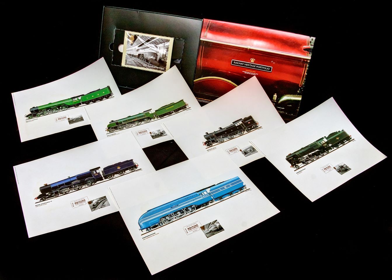 Thank you, David Ireland, a renown specialist photographer, for sending this excellent photo of the Royal Mail Railway Heritage Portfolio that is part of his personal collection. This limited edition set (only 2000 were produced), was released on 19th August 2010 and featured 6 of Stuart Black's artworks. They were offered in conjunction with a set of postage stamps, post cards and first day covers that featured classic British locomotives.
